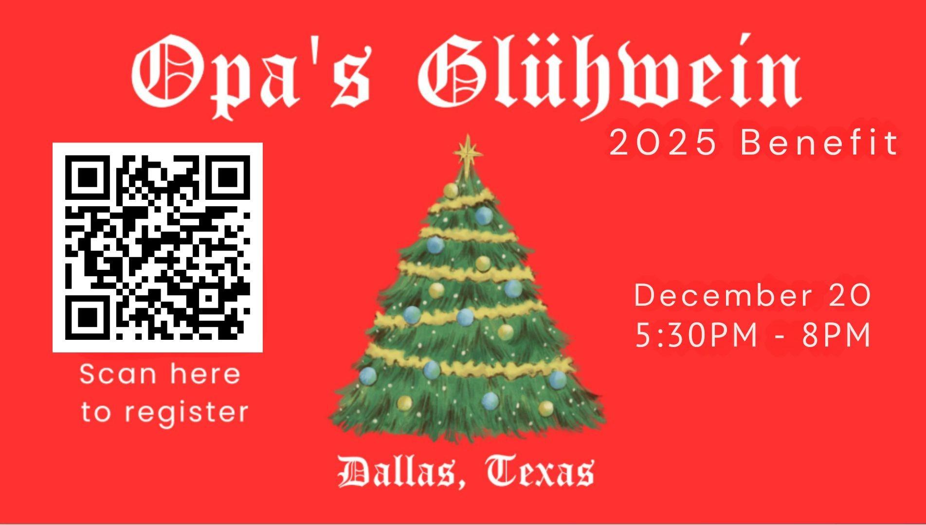 Stop by for a cup of Glühwein (mulled wine) or hot chocolate, hang out in our front yard and take a stroll to enjoy the Lakewood Christmas lights. Opa's Glühwein is a Zajicek family tradition, benefitting a great cause!